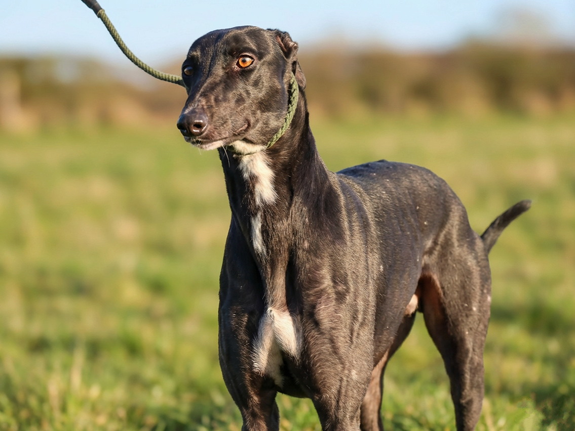 Gee is currently gaining confidence by living alongside his kennel mate, Bloom. He is social with other Greyhounds and finds a great deal of comfort in the company of his own kind. Having another calm dog in the home could be a wonderful asset for him as he learns the ropes of domestic life.